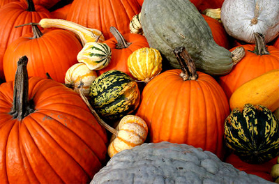 pumpkins and decorative gourds